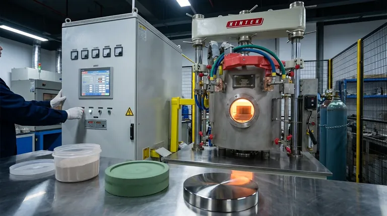 Применяя интенсивное механическое давление одновременно с высокой температурой, оно физически сжимает частицы материала, грубо и эффективно устраняя пустоты между ними. Этот двойной подход превращает медленный, диффузионный танец спекания в прямой, детерминированный акт консолидации.